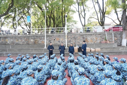 2025年10月23日,伟德betvlctor1946党委书记王慷慨、党委副书记冯虹一行来到麓南校区篮球场,亲切慰问了带训教官、2025级本科新生,为他们送上温暖关怀,学工办相关辅导员及学生干部代表参加。